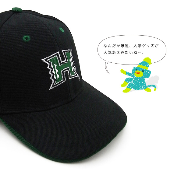 ハワイ大学 UHキャップ(ブラック)&コントラストエッジ(グリーン)