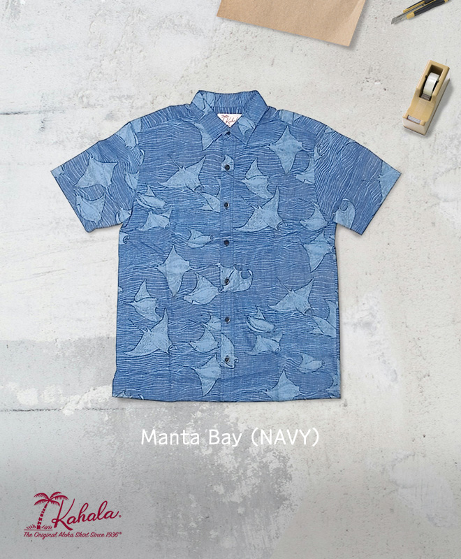 【Kahala】 アロハシャツ ~ Manta Bay ~(Navy) 素材 100% Cotton